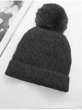 Knitted Lined Hat With Removable Pompom Black