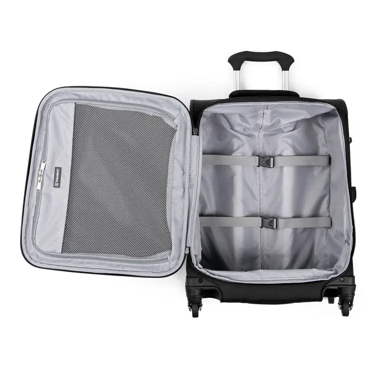 As a stand-alone or as a complement to your checked baggage, the Maxlite® 5 19-inch International Expandable Carry-On Spinner is sized to meet most international cabin standards with extra space to spare thanks to its useful zippered expansion feature that provides up to 2 inches of additional packing capacity. Ideal for short- to medium-length trips, this indispensable travel bag features a dual-position adjustable PowerScope Lite handle with patented comfort Contour Grip and four 360° Spinner wheels for effortless mobility in any direction. Compact and lightweight, yet sturdy and durable, this stylish suitcase comes equipped with two convenient zippered front pockets, a full-length interior lid pocket, a side accessory pocket, and a roomy interior with adjustable tie-down straps to keep your packed items securely stowed.