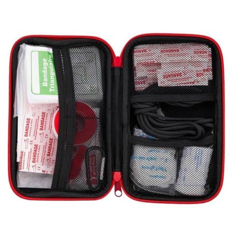 The 88 piece First Aid Kit with durable hard case is perfect for travel.