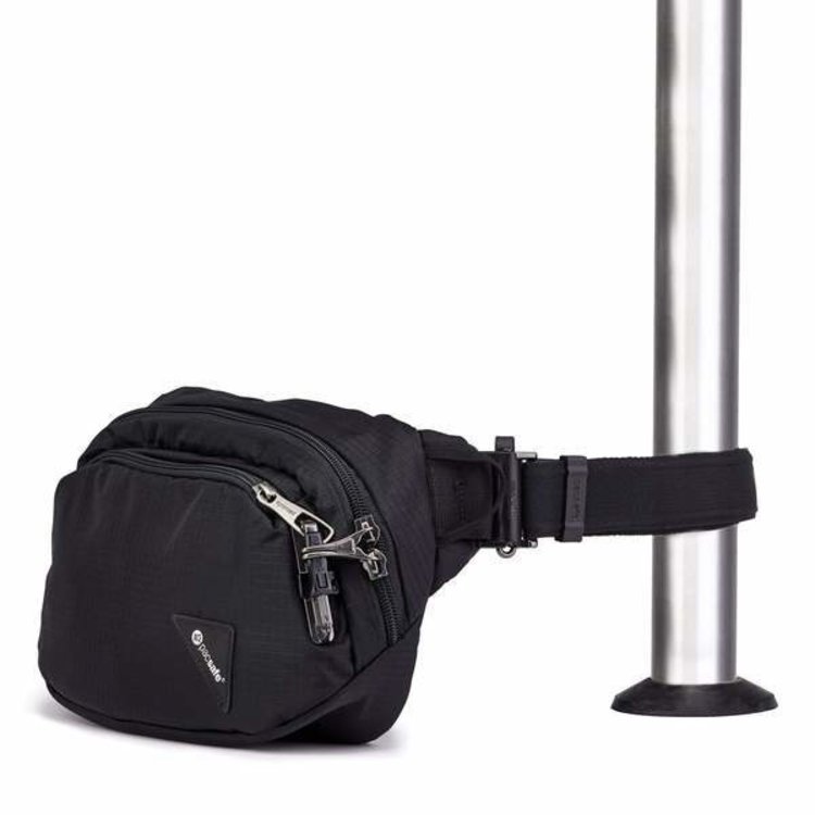 A hip pack for those who are always on the go. The perfect size for your passport, keys, wallet and even a 7” tablet, all with quick access, making the Vibe 100 anti-theft hip pack ideal for those always on the go. The pack has 7 anti-theft features to guard against cut & run theft, scan scams and sneaky fingers, including an RFIDsafe™ blocking pocket, a Roobar™ Sport locking system and a PopNLock security clip so you lock your bag down.