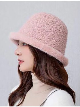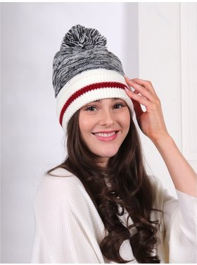 Knit Double Layer Camp Hat w/ Pompom- Grey white