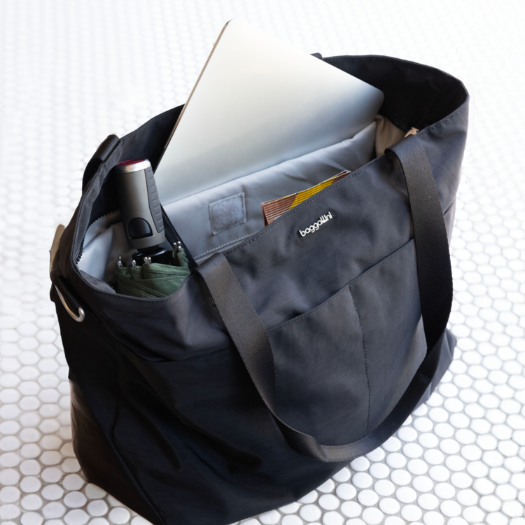 With the ability to be worn as a shoulder bag or crossbody, this spacious tote is a must-have for your work week, upcoming travels, or day trips. Store your computer in the secure 15” laptop sleeve. For smaller items that require fast access, exterior slip pockets and an anti-theft card wristlet have you covered. Stack the Carryall Laptop Tote on your wheeled luggage for a seamless travel experience.