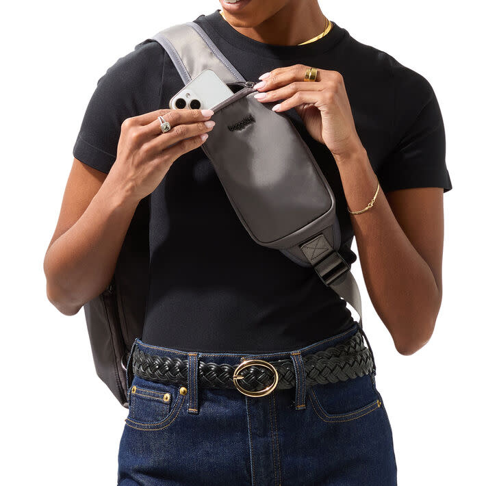 • Based on our best-selling Central Park Sling, this version features extra room for everything you need to get active. An expandable side pocket easily fits larger water bottles, and zippered pockets offer an easy way to store snacks for the hiking trails. Our favorite feature? An innovative phone pocket built right into the shoulder strap helps you keep your device close at all times.