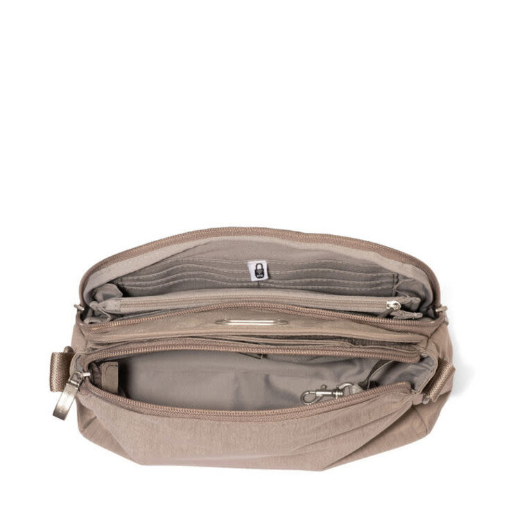 With a sleek flip lock closure and a built-in front RFID-wallet, this crossbody bag is all about functional style. A privacy pocket and built-in key leash helps keep smaller items secure. Plus, it’s easy to clean — and even easier to wear thanks to the lightweight design.