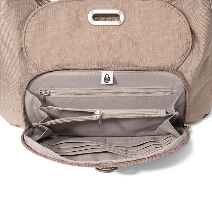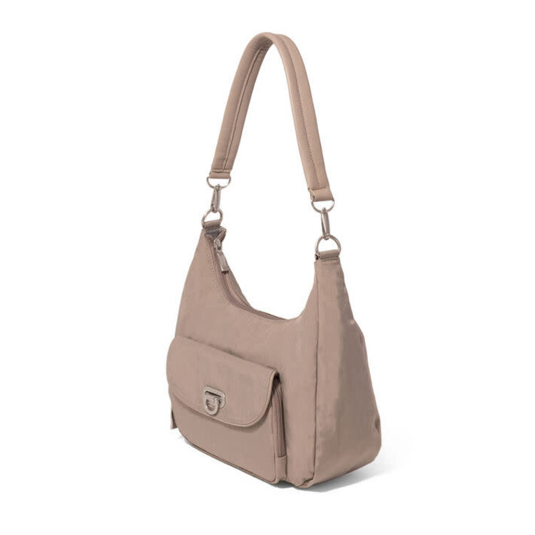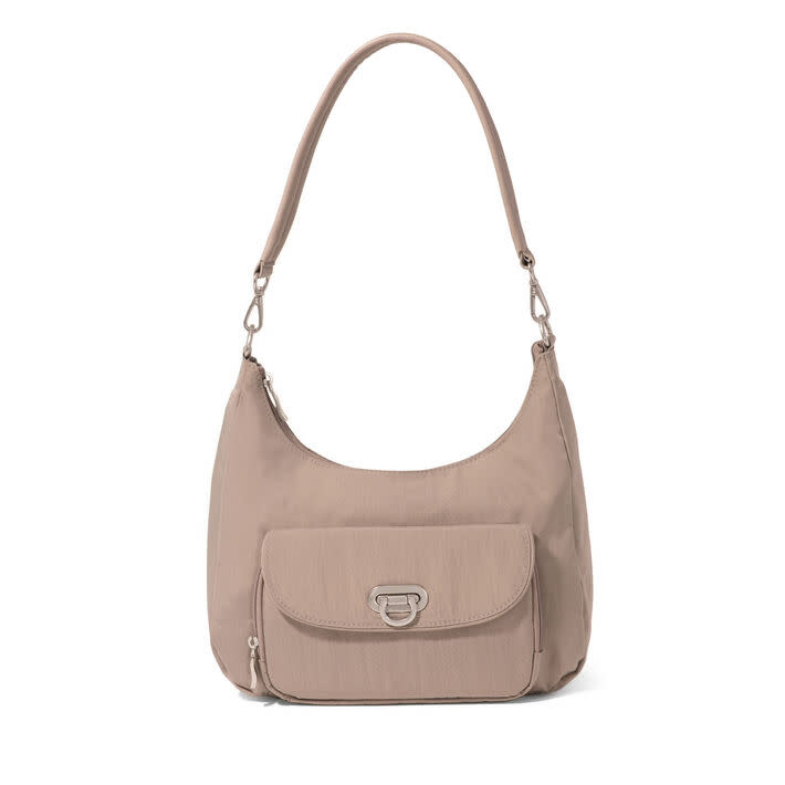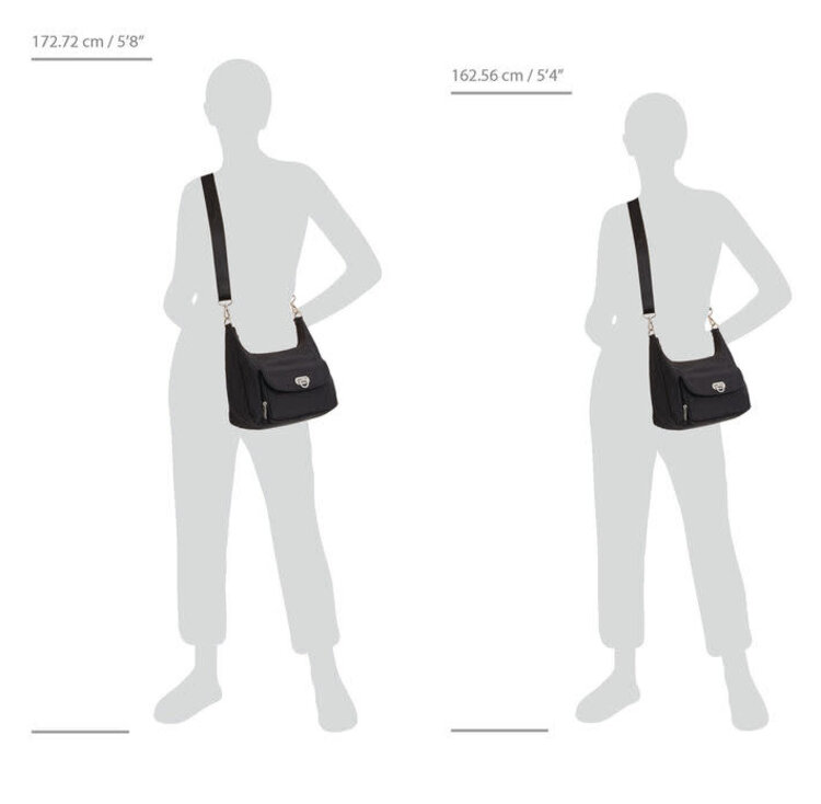 Made with convertibility in mind, this style can be worn as both a crossbody or a half moon shoulder bag. A sleek flip lock closure keeps the RFID-protected front wallet secure, and the adjustable crossbody strap helps you achieve the perfect fit.