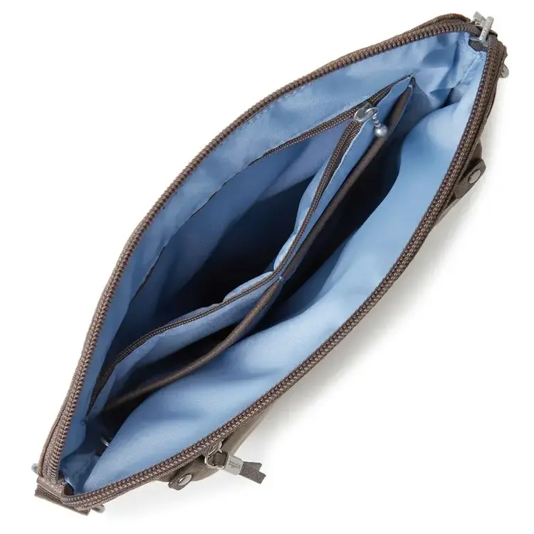 You’ll be ready to get up and go at a moment’s notice with the go bagg with RFID wristlet. This sleek crossbody bag features the functionality that baggallini is known for with stylish accents like faux leather zipper pulls. Interior organization ensures everything has a place, and a removable RFID wristlet helps keep your information safe.