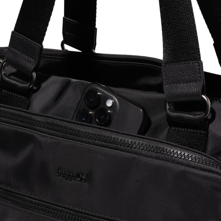 We've all booked a connection that had us wondering how fast we could run; the last thing you need is a bag that weighs you down. Pillowy. Lights as air. Sustainably crafted. The Go To Laptop Tote features a built-in luggage handle sleeve to help you stack your bags and catch that flight.