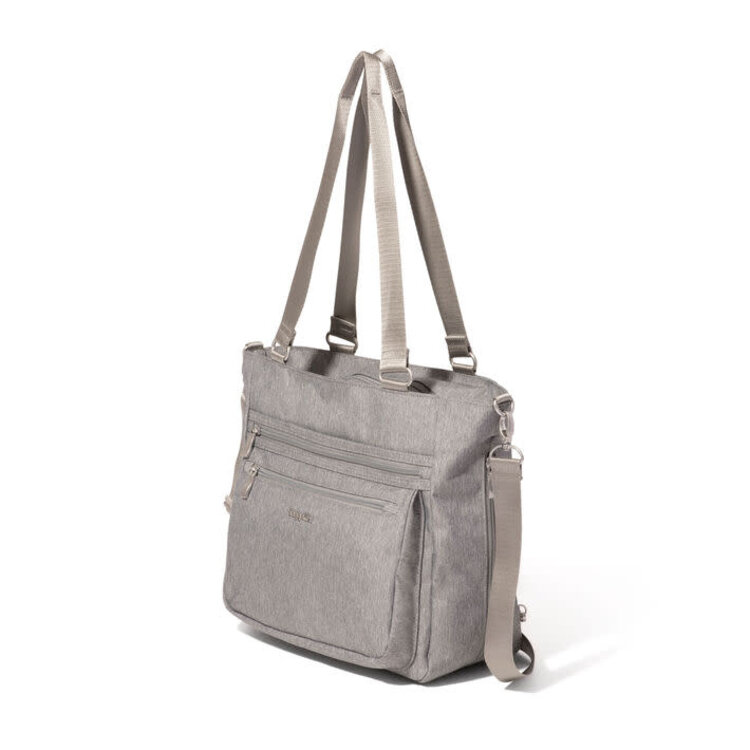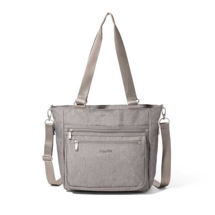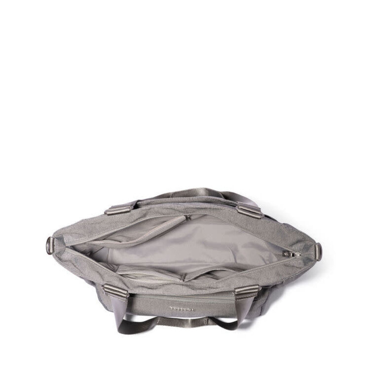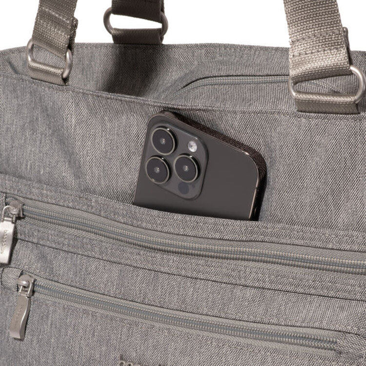 • Just the right size for everyday errands and equally at home as an out-and-about travel bag, this tote bag comes complete with a water bottle pocket and an RFID-protected wristlet. A convenient luggage handle sleeve helps you stack your bags while you’re catching connecting flights, and the wide variety of pockets ensure everything has a place.