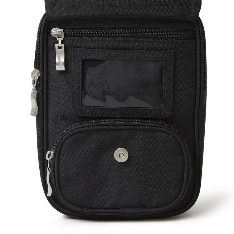• Brilliantly versatile crossbody travel bag with multiple pockets that zip shut to keep contents out of sight. Vertical orientation makes this a smart choice for airport days' stowing your ticket, passport, inflatable neck pillow and lip balm, with room to spare for your cell phone .