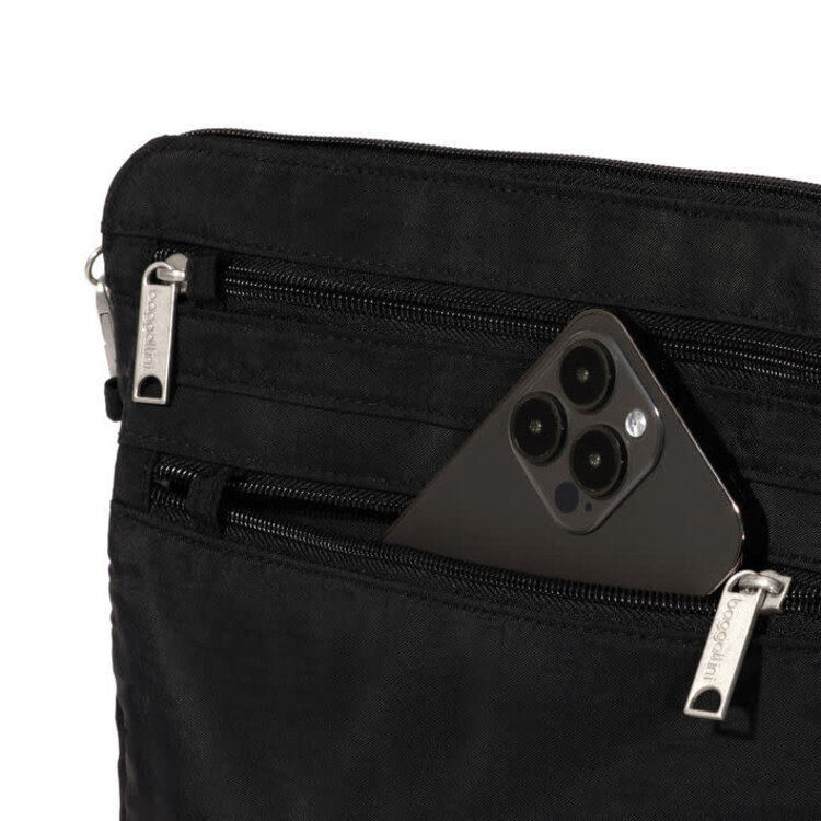From work days to extended vacations, keep your belongings safe in a bag with sleek, modern appeal. Designed with various protective features like RFID card slots, cut-resistant materials, and locking zippers, this crossbody will become your go-to bag for adventures near and far.
