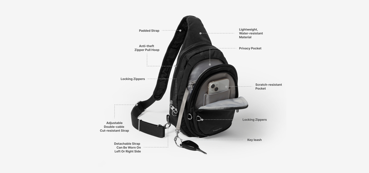 More sightseeing, less worrying. Protect your possessions and peace of mind with easy-access pockets, anti-theft hardware, and a slash-resistant sling strap.