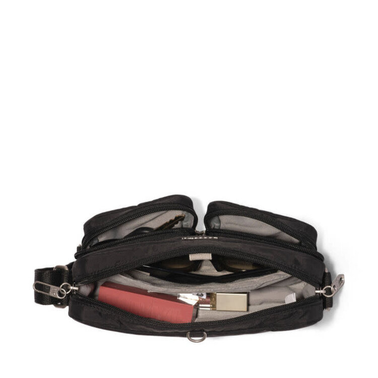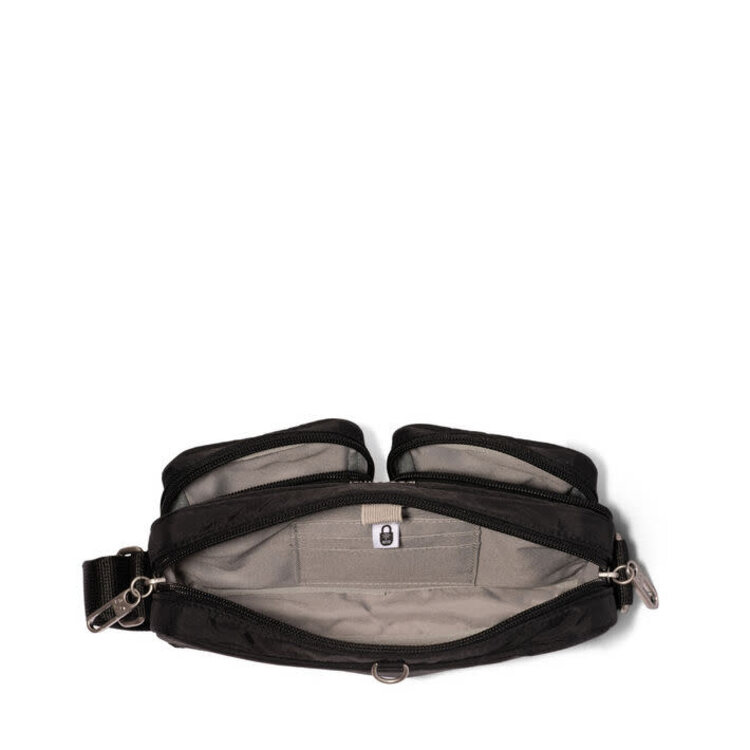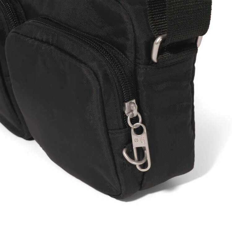 Protect your things and your peace of mind. This anti-theft crossbody bag brings thoughtful features like a locking zipper, cut-resistant straps, built-in RFID protection, and slash-resistant material to a compact, stylish design.