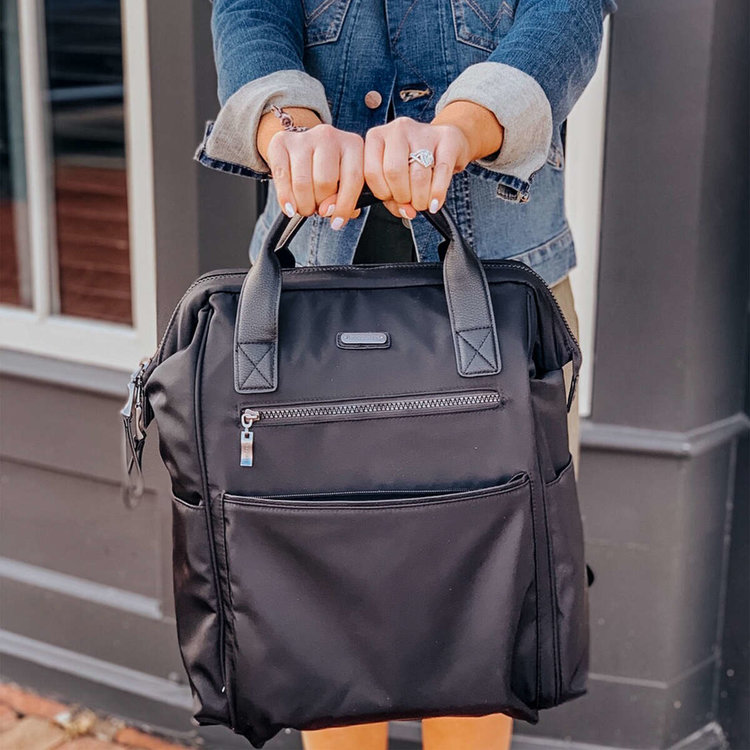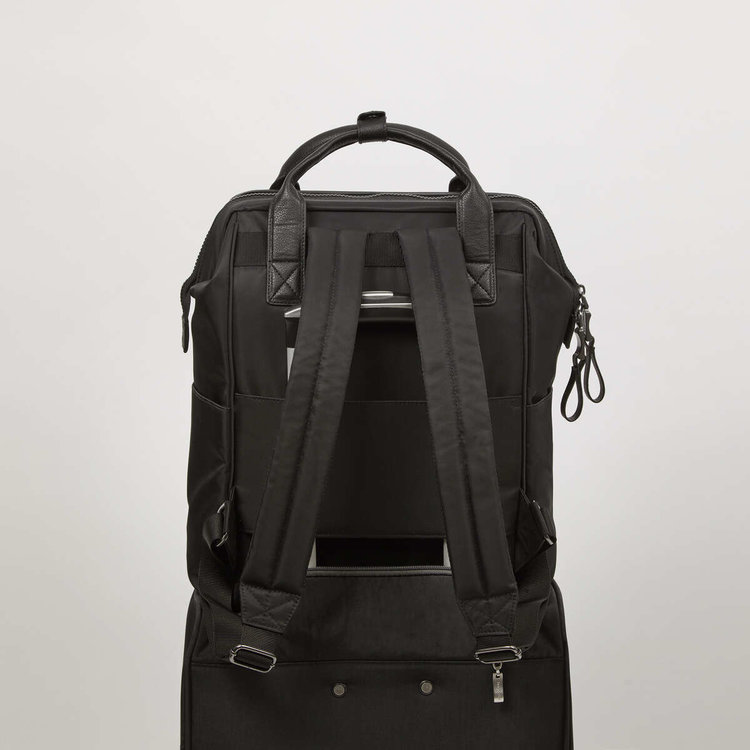 • The soho laptop backpack is your new favorite work bag! With a padded laptop pocket and more than enough space for all your necessities, it will keep you effortlessly organized in style. Plus, a luggage handle sleeve makes this the perfect bag for running to make your connecting flight.