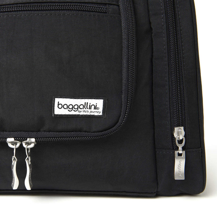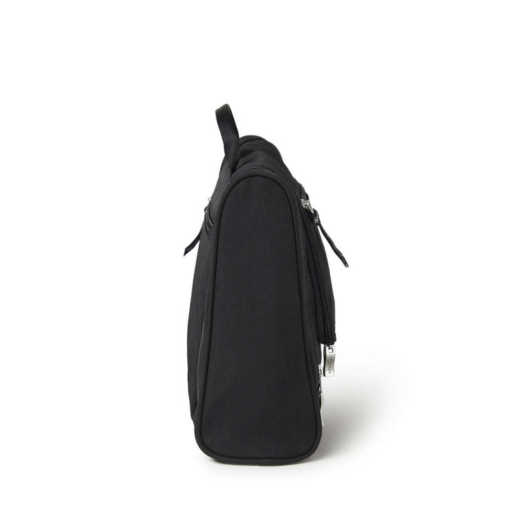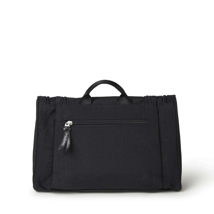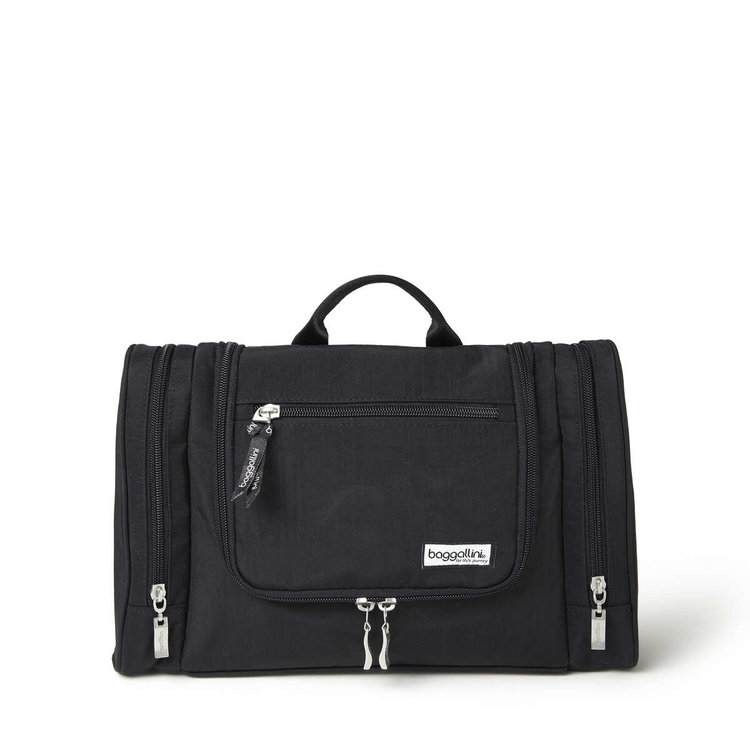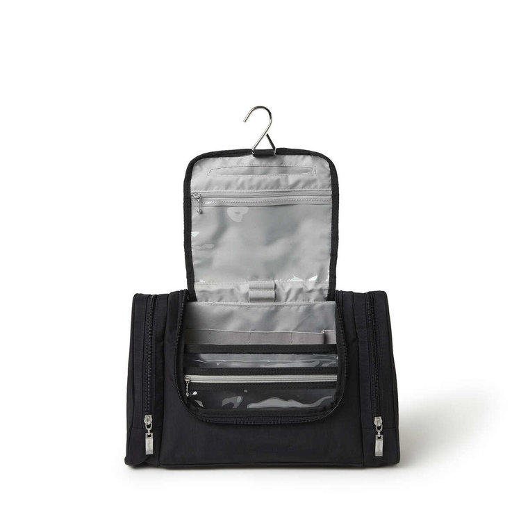 • This style is the ultimate toiletries bag. It features multiple exterior compartments as well as a hanging hook to save space in those cramped hotel bathrooms, while water-resistant fabric is a must for storing toiletries and clear panels make finding your things a breeze. Best of all, this toiletry bag's modular design fits easily in baggallini luggage, making it a must for travel organization.
