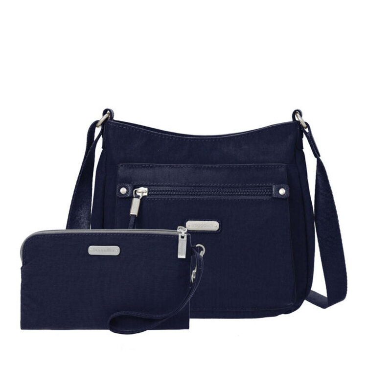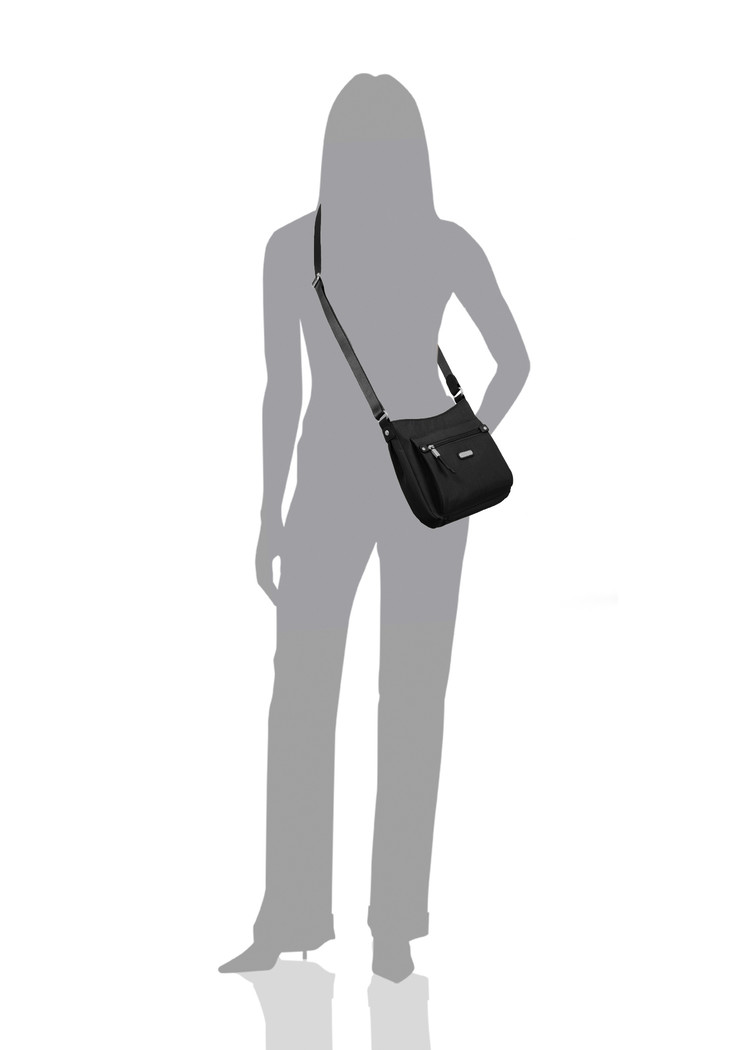 Whether your day takes you uptown, downtown, or anywhere in-between, the uptown crossbody bag with RFID wristlet will help you stay organized and ready for anything. Made with durable, lightweight nylon, this water-resistant bag features an adjustable strap, so you can wear it as a shoulder bag or crossbody bag. A removable RFID wristlet helps keep your information safe.