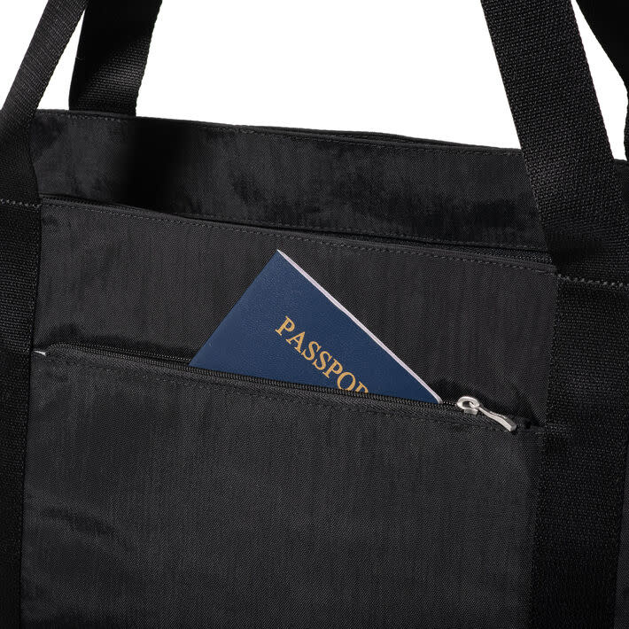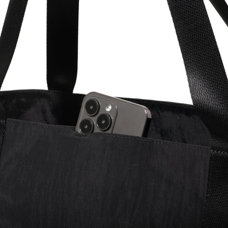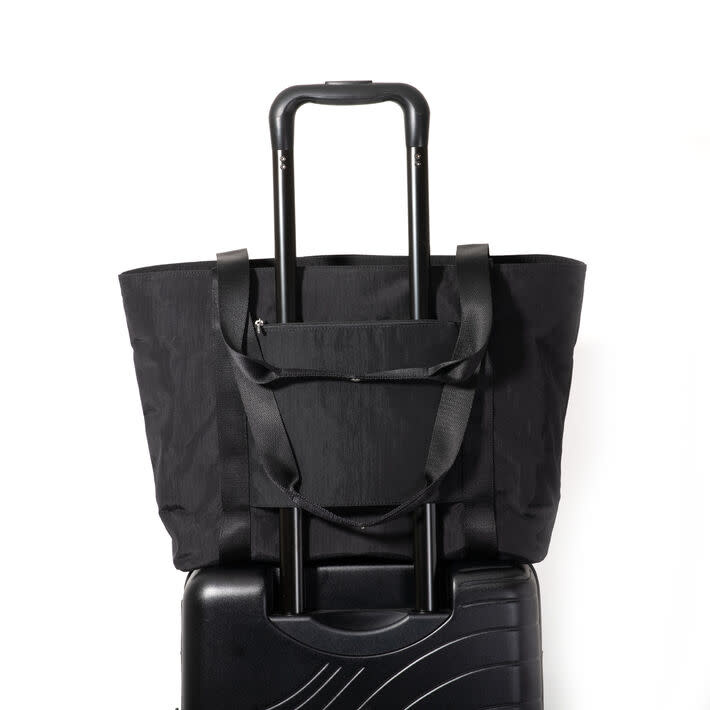 • The Via Tote reimagines a timeless silhouette with quiet organization. Its clean TruNylon exterior hides thoughtful details, including two discreet zipper pockets tucked into the top and a grab-and-go phone pocket—each accessible from the outside while maintaining a streamlined look. Inside, a spacious compartment with a padded laptop sleeve and an interior water bottle pocket keeps daily or travel essentials neatly in place. For life on the move, a luggage sleeve on the back slides securely over suitcase handles. Classic in shape yet modern in function, the Via Tote is built to carry it all with ease.