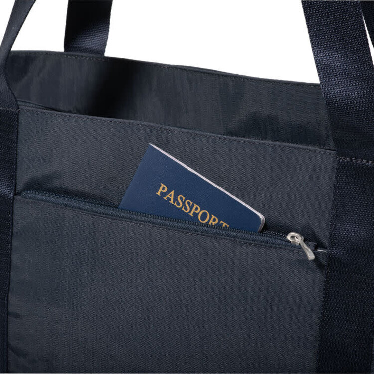The Via Tote reimagines a timeless silhouette with quiet organization. Its clean TruNylon exterior hides thoughtful details, including two discreet zipper pockets tucked into the top and a grab-and-go phone pocket—each accessible from the outside while maintaining a streamlined look. Inside, a spacious compartment with a padded laptop sleeve and an interior water bottle pocket keeps daily or travel essentials neatly in place. For life on the move, a luggage sleeve on the back slides securely over suitcase handles. Classic in shape yet modern in function, the Via Tote is built to carry it all with ease.
