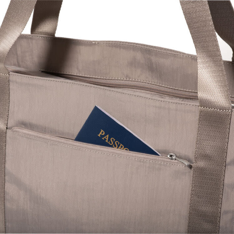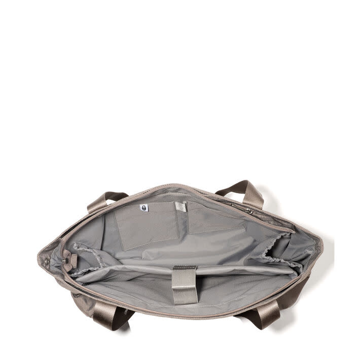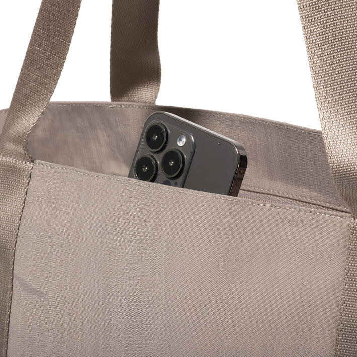 The Via Tote reimagines a timeless silhouette with quiet organization. Its clean TruNylon exterior hides thoughtful details, including two discreet zipper pockets tucked into the top and a grab-and-go phone pocket—each accessible from the outside while maintaining a streamlined look. Inside, a spacious compartment with a padded laptop sleeve and an interior water bottle pocket keeps daily or travel essentials neatly in place. For life on the move, a luggage sleeve on the back slides securely over suitcase handles. Classic in shape yet modern in function, the Via Tote is built to carry it all with ease.