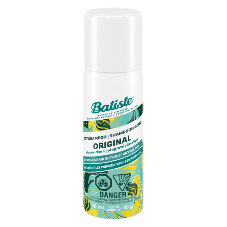 Take your hair from flat to fab with Batiste Original Dry Shampoo. This waterless formula targets excess oil, dirt, and grease at the roots. Plus, its Clean & Classic Original scent leaves hair smelling great. Batiste Dry Shampoo instantly makes your hair feel clean, fresh, and full of body and texture.Directions: 3 steps to fabulous hair: spray from 30cm away into roots, massage thoroughly and brush to remove excess