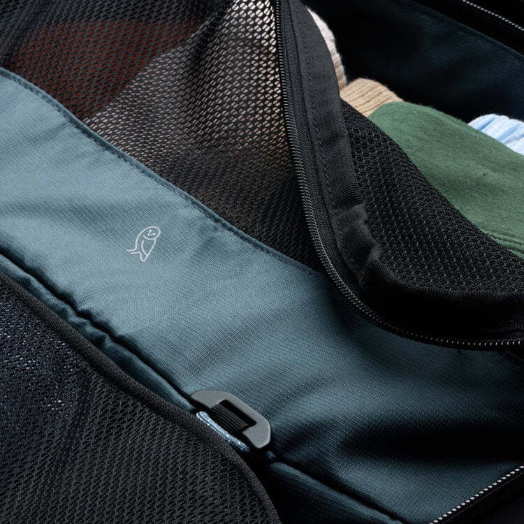 • Large mesh drop-in zone – use our packing cubes for extra compartmentalization