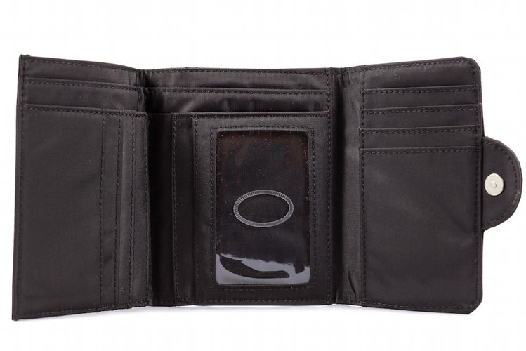 • This is almost a cross between the high capacity of our Monte Cougar wallet and an expanded version of our regular tri-fold wallet but it leans toward the tri-fold wallet side making it more compact. A good mid-sized wallet, this all-purpose tri-fold wallet holds about 25-30 plastic cards with two deep sections for your plethora of $100 bills, Whole Foods coupons and Saks Fifth Avenue receipts. The zippered compartment on the back of this tri-fold wallet is roomy enough for a large handful of change, and the small magnetic closure keeps the whole wallet securely shut when it's being jostled around in your bag or bouncing around on the bottom of your butt (yes it fits in male back pockets easily also). Crafted from ultra-thin, durable, machine-washable, nylon micro-fiber. P.s. trivia, Trixie was Speed Racer's hot girlfriend. *** Please note due to global supply issues both zippers and pulls may differ from the photos above. Features: