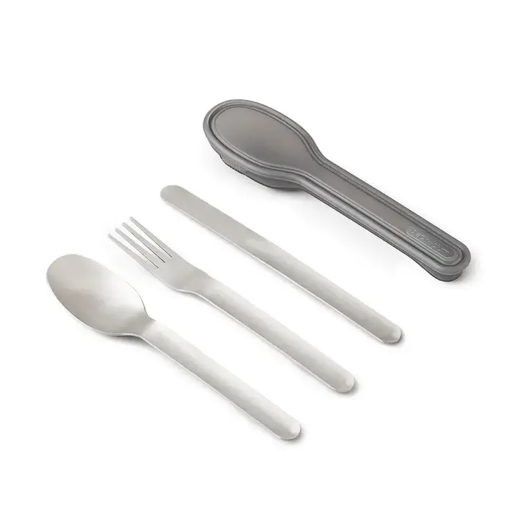 A nesting knife, spoon and fork set that feels great to hold and conveniently nests into a protective case for easy carrying.