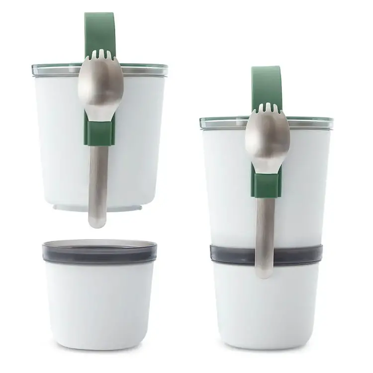 Two separate pots that makes it easy to carry your breakfast or lunch on-the-go.