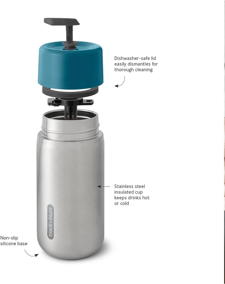 A 340ml stainless steel vacuum insulated travel cup that is completely leak proof and will keep your drinks hot (or cold) for hours.