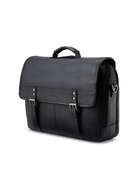 Samsonite Classic Leather Flapover Briefcase- Black