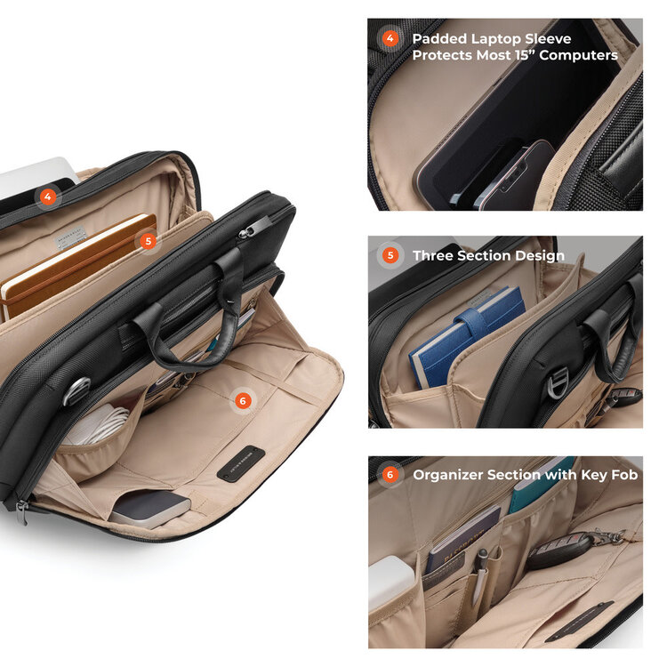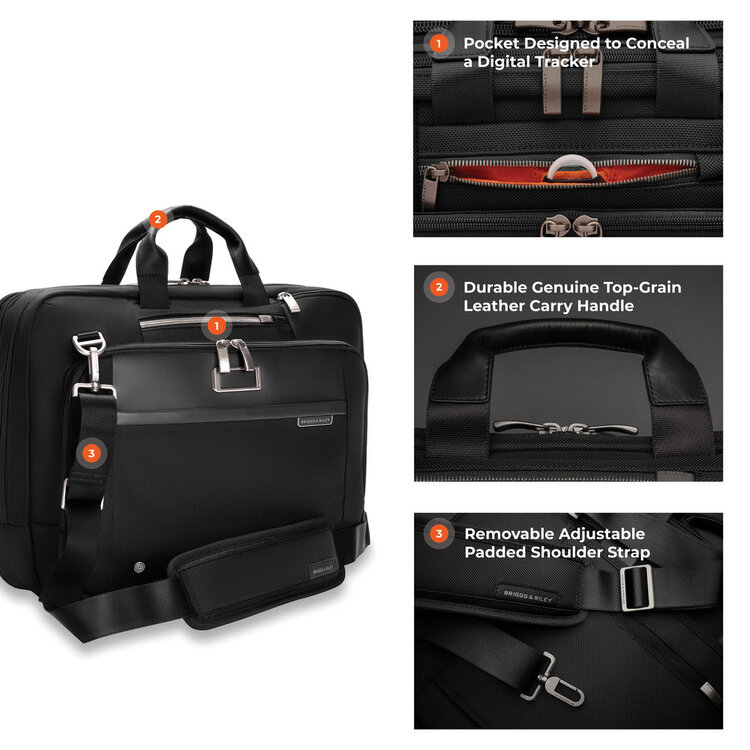 This brief is your go-to for overnight business trips—no additional bag needed. It’s equipped with a three-section design (plus expansion) to accommodate and organize all of your devices, documents, and even a change of clothes. Fits up to 17" laptops.