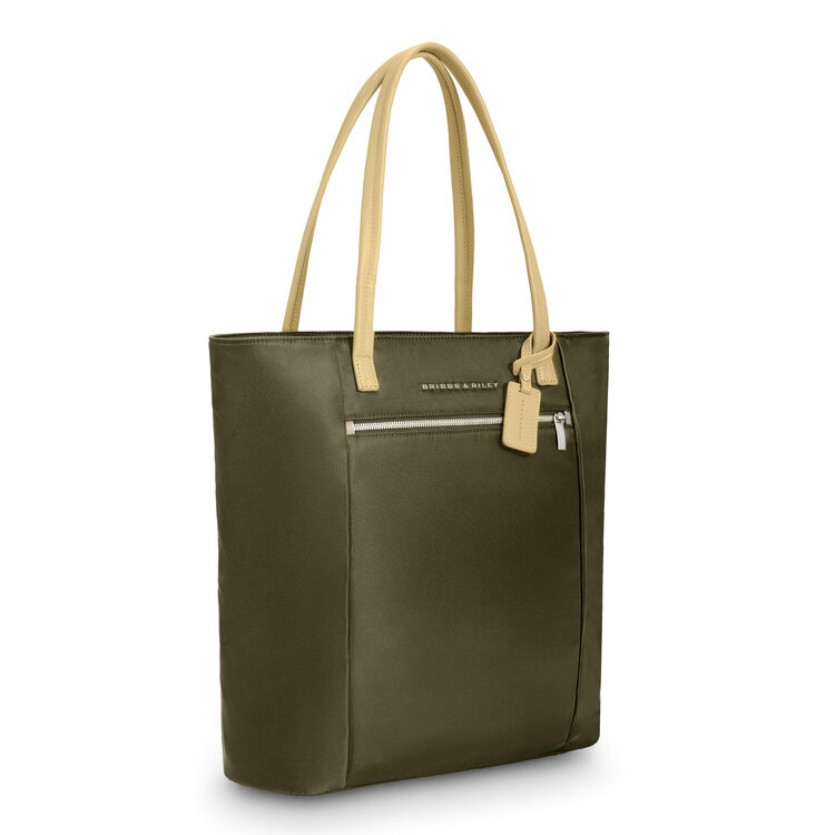 Designed with a stylish vertical silhouette, this tote doesn’t compromise on capacity—with a tall main compartment, a dedicated laptop pocket, and plenty of interior and exterior pockets. Its soft leather handles can be carried by hand or slung over your shoulder. Fits up to a 15" laptop.