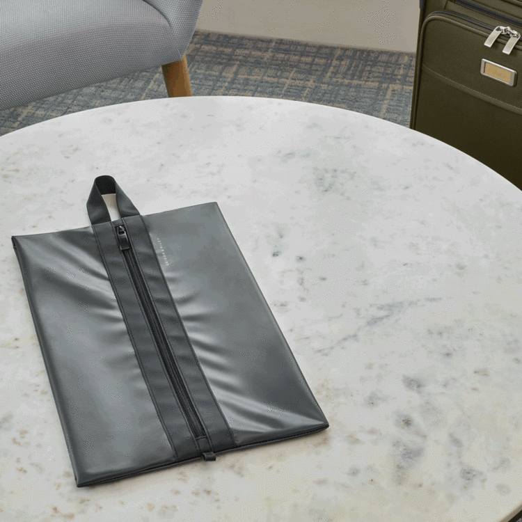 To avoid damaging or wrinkling your garments, pack your large shoes, boots, heels, and more, in this translucent shoe pouch. It's sleek design is easily wipeable while also providing extraordinary protection from scuffs and scratches.