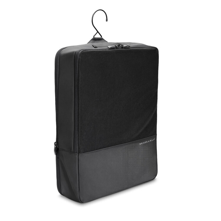 Our largest available compression cube, this zip-around hanging laundry bag saves you valuable space by expanding up to 2”, then compressing back down. A tuck-away hook is included for hanging up, making it easy to add laundry. Its versatile size can be used to store clean clothing en route and hold laundry on your return.