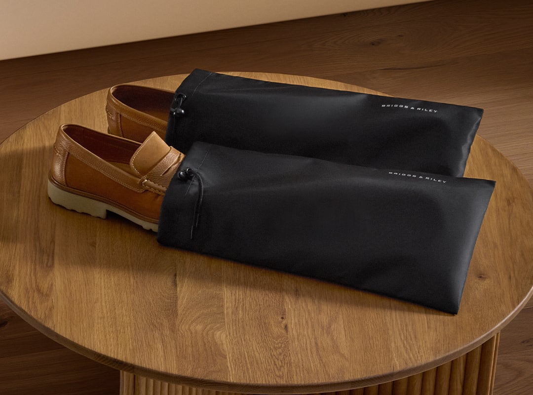 Protect your shoes and surrounding items with a pair of travel shoe bags. A generous capacity fits up to men’s size 13 shoes, and individual pouches for each shoe facilitate endless packing configurations while minimizing scuffing and scratches.