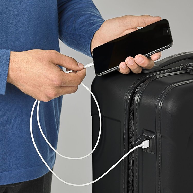 Perfect for your next trip overseas is our Torq International Carry-On Spinner. Featuring an external USB port, you won't have to worry about running out of battery. And forget trying to wrestle your laptop out of your bag at security; our patented hinged front pocket makes packing electronics and important items a breeze.