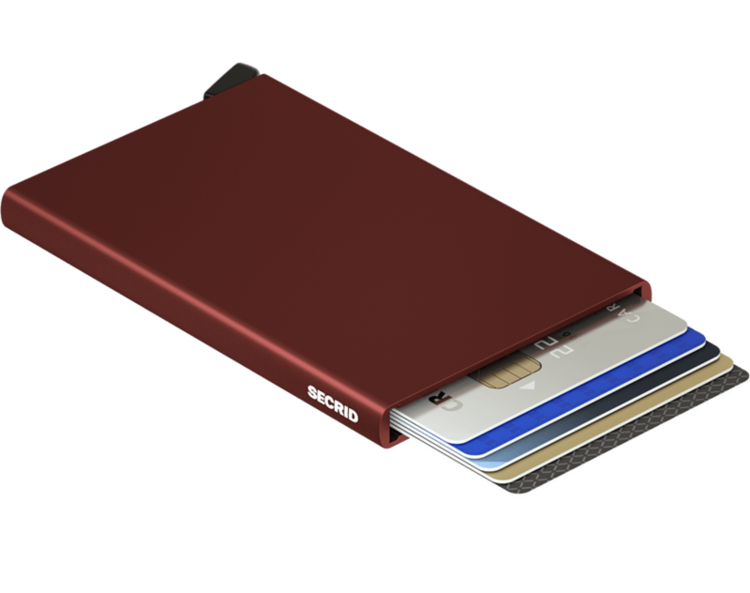 • The Card Protector is the heart of the Secrid collection and our most minimal wallet. The patented mechanism allows you to slide out your cards with one simple motion, ready for immediate use. The aluminum casing protects from bending, breaking and unwanted wireless communication. The Secrid Cardprotector is only 8 mm thick and has won a Red Dot Design Award.
