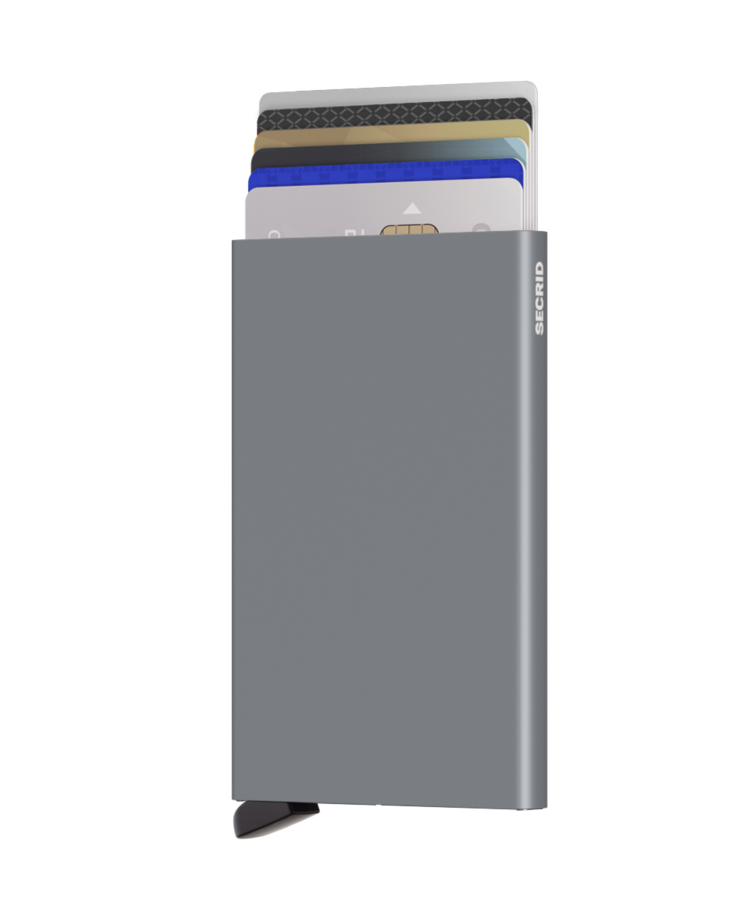• The Card Protector is the heart of the Secrid collection and our most minimal wallet. The patented mechanism allows you to slide out your cards with one simple motion, ready for immediate use. The aluminum casing protects from bending, breaking and unwanted wireless communication. The Secrid Cardprotector is only 8 mm thick and has won a Red Dot Design Award.