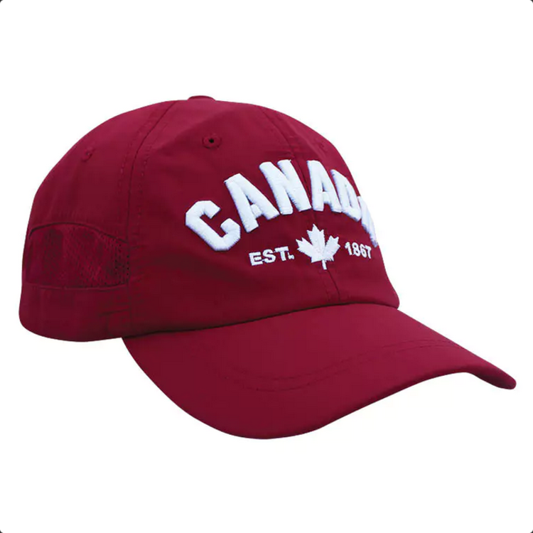 One size. Bonded polyester. Mesh sides. Velcro Strap. Front Embroidery.