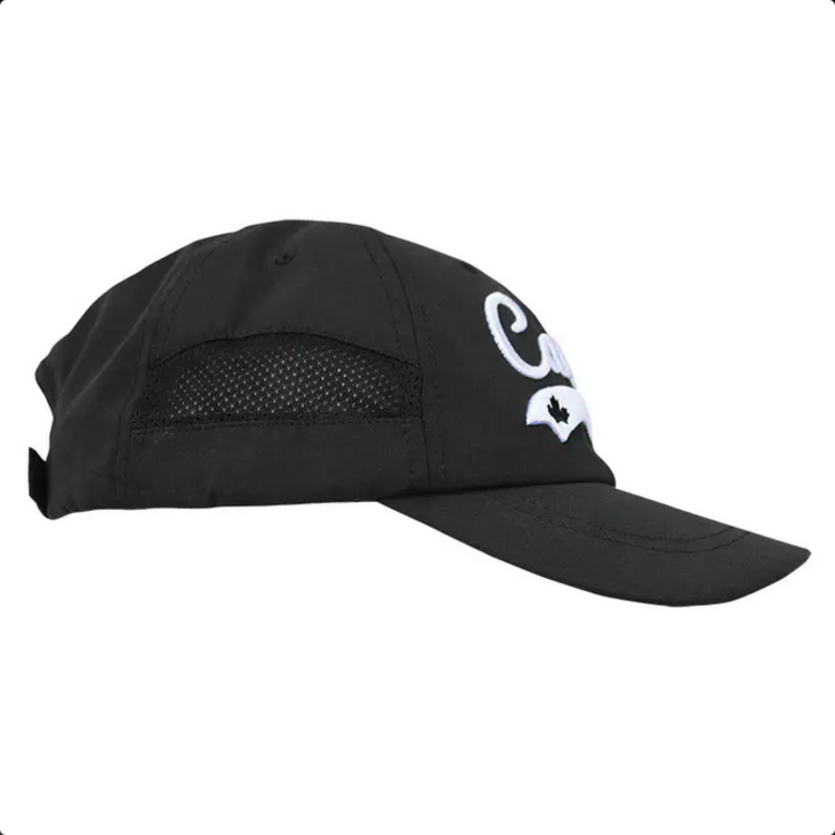 • One size. Bonded polyester. Mesh sides. Velcro Strap. Front Embroidery.