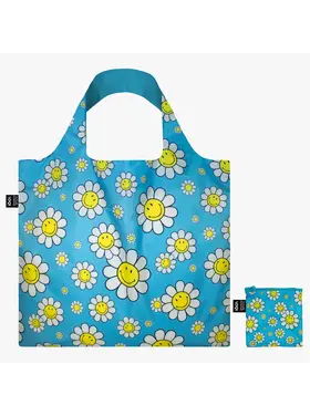 Loqi Tote- Smiley- Flowers Aquarius Blue- Recycled Bag