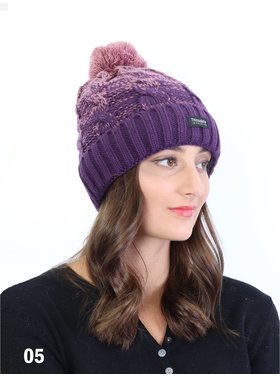 Two Tone Cable Knit Hat w/ Pompom- Purple