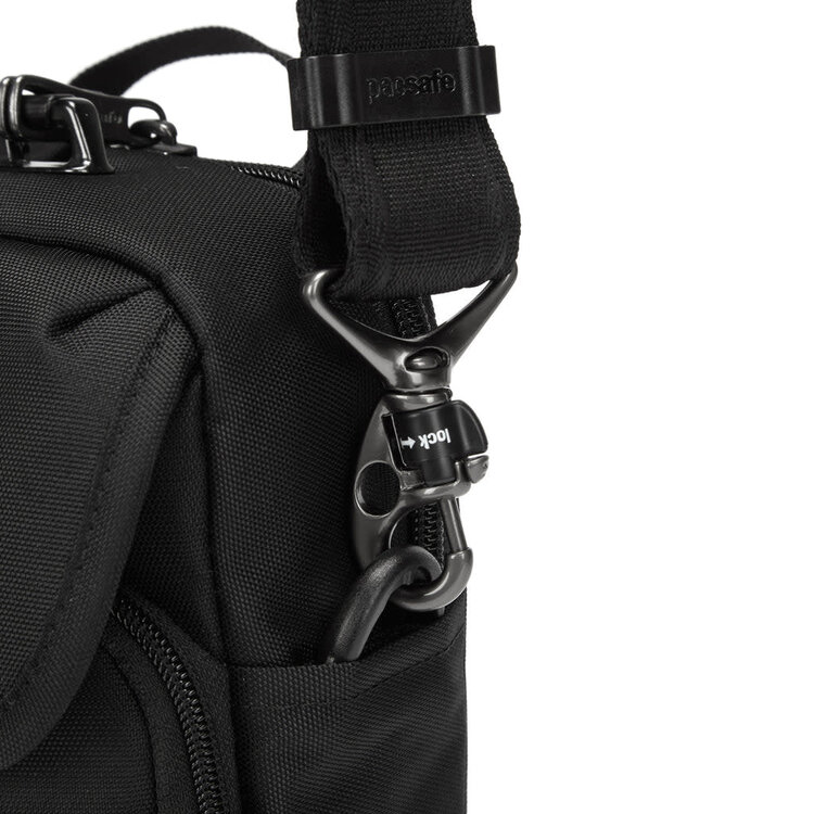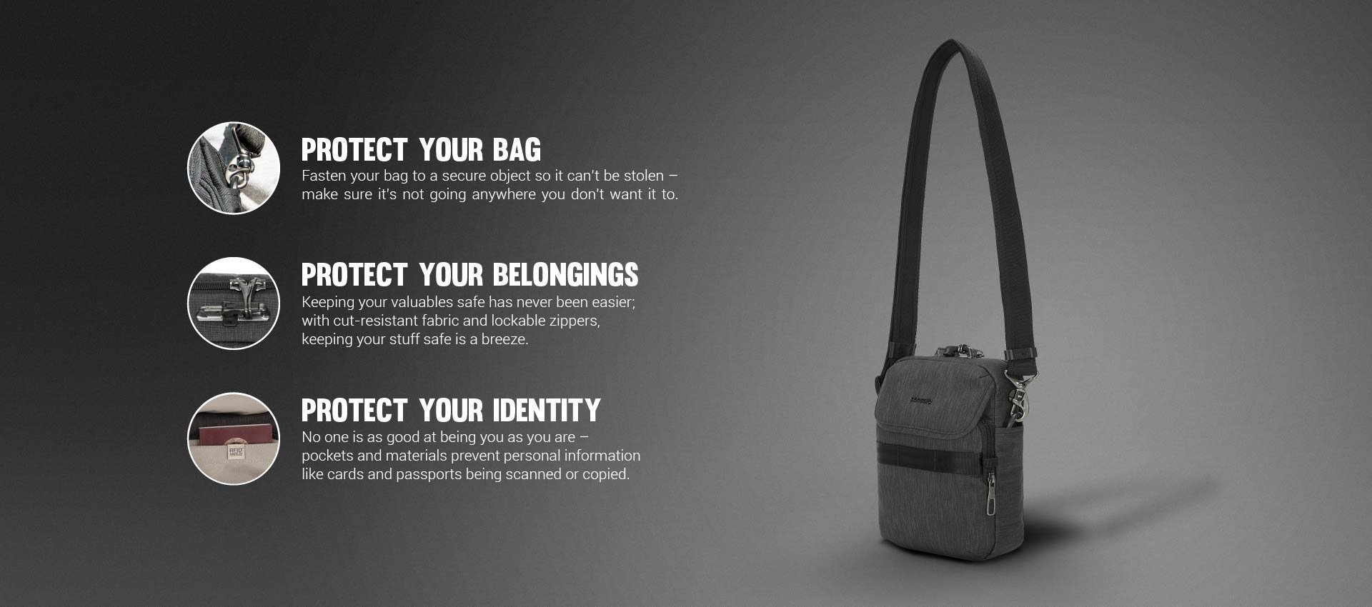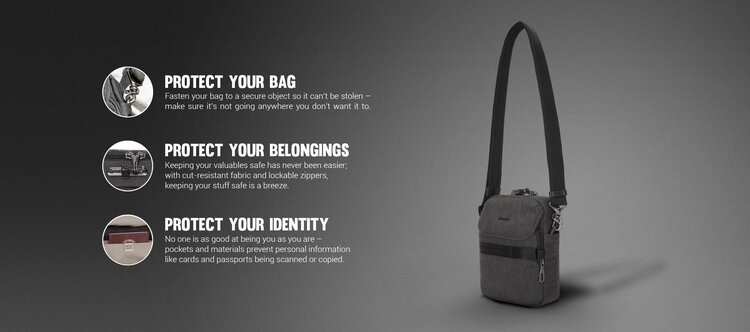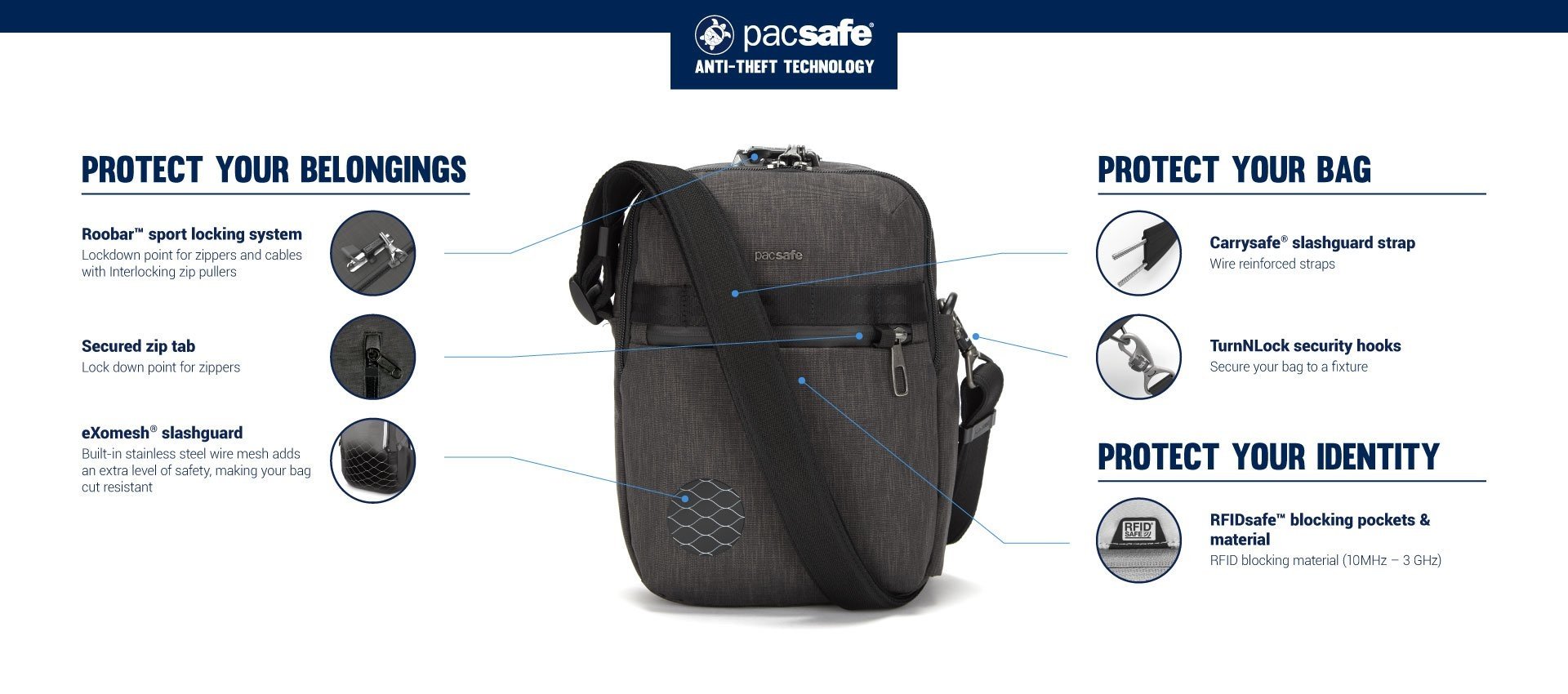 Easy to carry in fast-paced city, yet still holds your valuables and protects them too. This crossbody fits a 8-inch tablet and has a clip to secure your keys or wallet, while lockable zips, cut-resistant materials, an RFID blocking pocket and an anchor strap give you extra confidence to step outside your comfort zone.