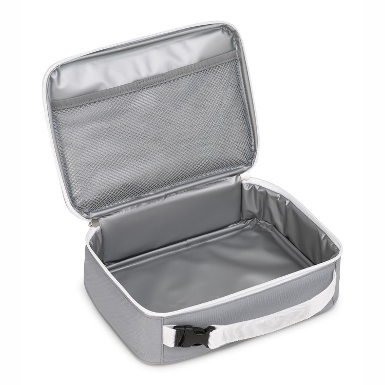 •  Heavy-duty webbing grab handle with side release buckle to attach the lunch kit to a backpack