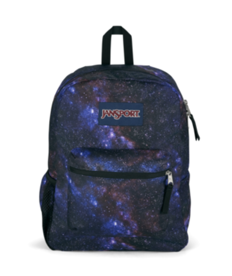 • The JanSport Cross Town Backpack Pack is constructed with 600-denier PU coated polyester material. A School or Commuter pack designed to carry everything you need for the day. A large main compartment with an internal laptop sleeve. 1587 cu in / 26 L storage space. A Front utility pocket with organizer. Straight-cut shoulder straps and padded back panel help ensure comfortable carrying. Mesh side water bottle sleeve for your favorite water bottle.