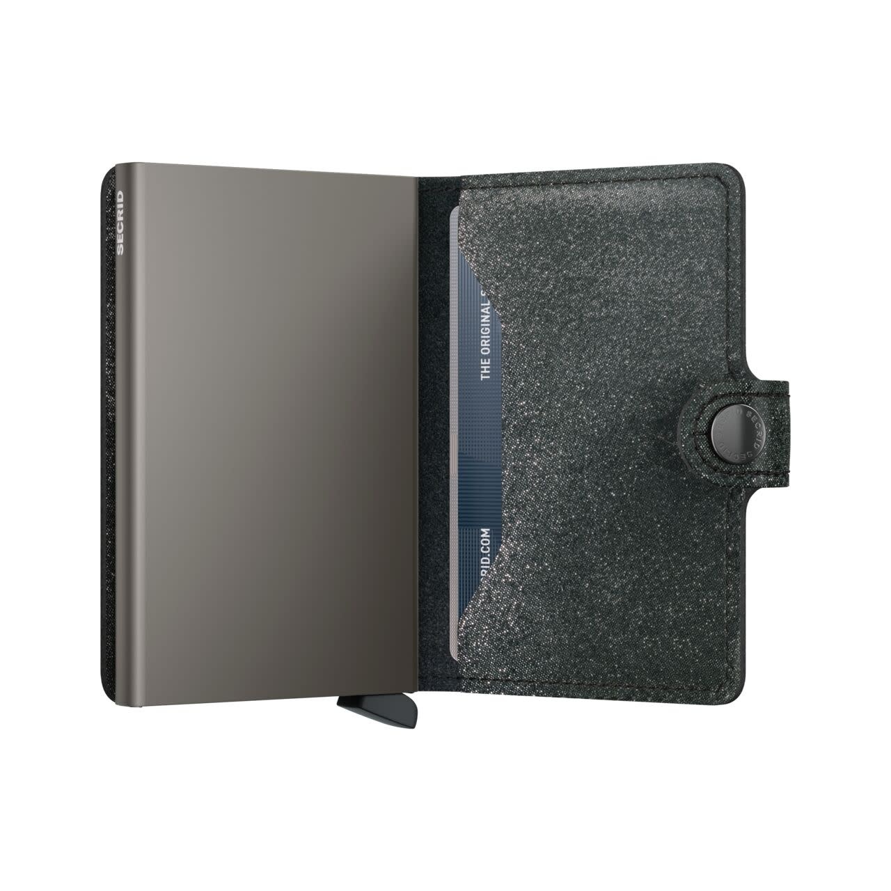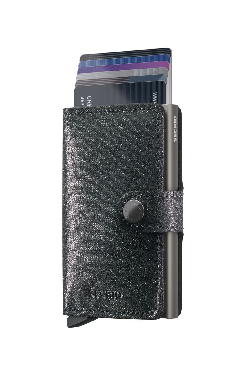 Small in size and surprisingly large in storage capacity, the Miniwallet combines the best of both worlds. The exterior holds banknotes, receipt and cards, while the aluminium Cardprotector allows you to slide out cards with one simple motion and protects them from bending, breaking and unwanted wireless communication.Holds