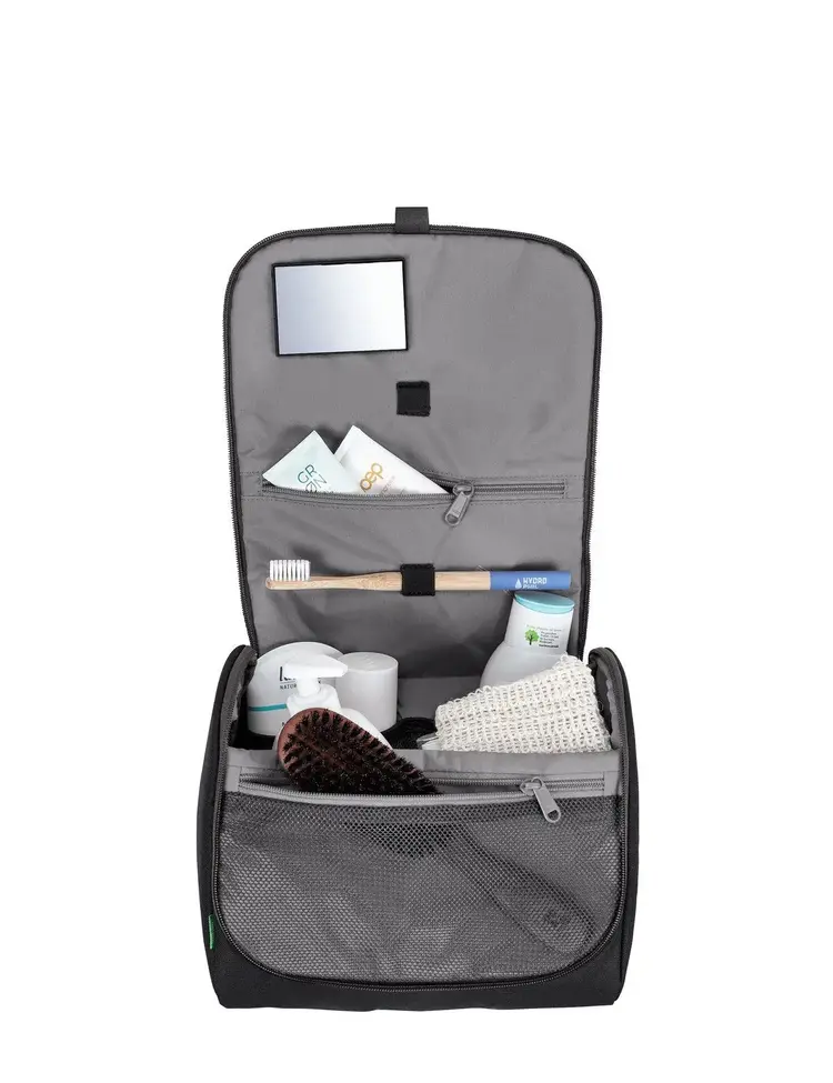 This clever wash bag can stand up on its own, but doesn't mind hanging around either: Its spacious, well-organized interior offers plenty of room for all your washroom accessories. The WegaWash wash bag features 360 degree padding making it a safe place for your cosmetics when traveling. It's got an integrated mirror and a separate zip compartment at the back for items you want to want to keep private. Its recycled material is not only very eco-friendly, but also durable and robust. The VAUDE Green Shape label stands for environmentally-friendly, functional products made from sustainable and bluesign® certified materials.