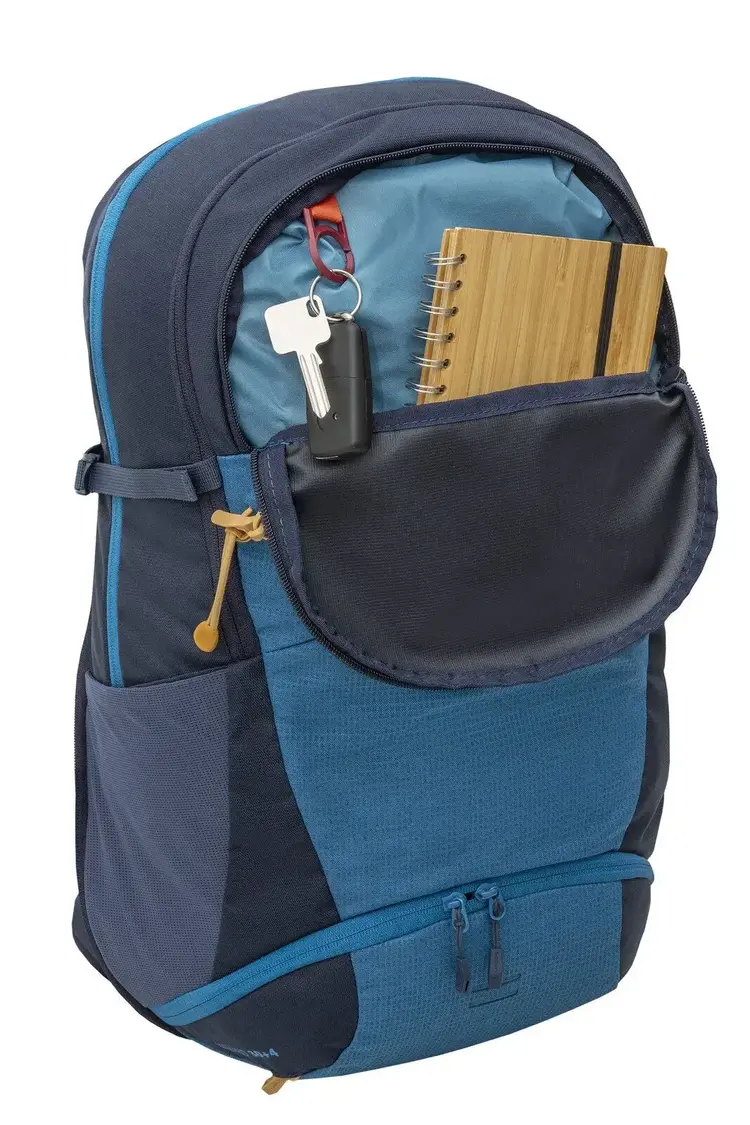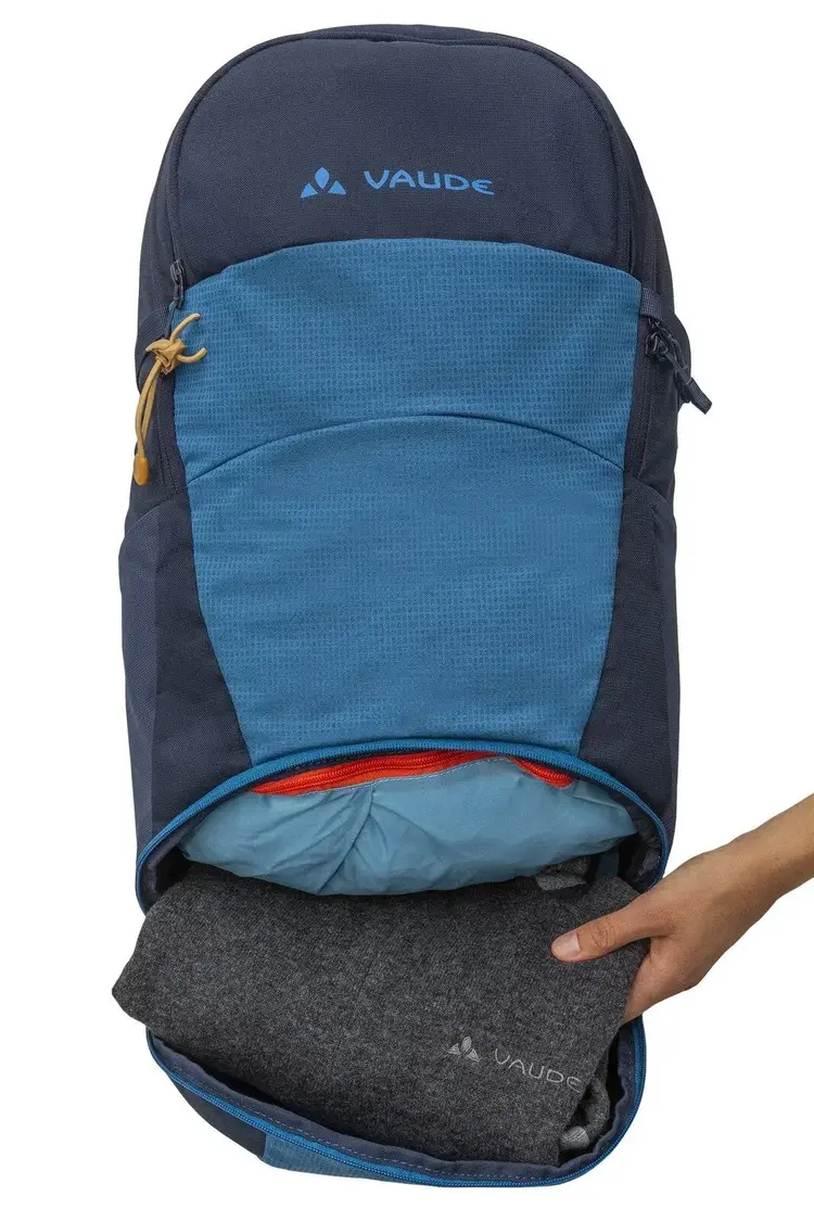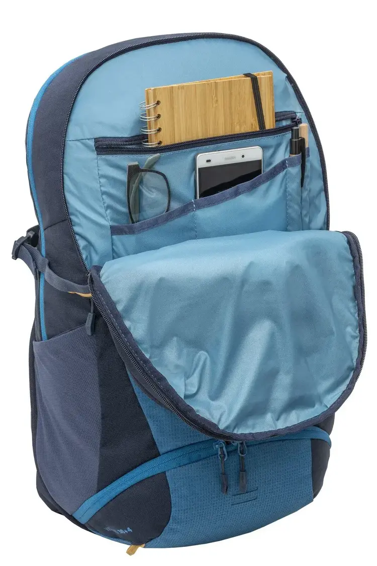 Fully adjustable, very spacious hiking pack for more comfort on your next hut-hopping or day trip in the mountains: The user-friendly Aeroflex Control suspension system keeps your back well ventilated during sweaty ascents and rides comfortably against your back on the way back down. The Shifting Back Length System also allows the back of the pack to be perfectly adjusted to your own torso size. An integrated zip volume extension and a practical organizer in the front pocket ensure flexibility and order. An additional floor compartment that's separate from the main compartment can be operated from the outside and stows wet rainwear or a change of clothes if necessary. This spacious pack is outfitted with external mesh pockets, a lid pocket, a hip belt pocket, hydration system compatibility and practical compression straps for versatile packing. The Wizard 30+4 was primarily made of recycled material and features environmentally-friendly Eco Finish water-repellency without fluorocarbons (PFC). The VAUDE Green Shape label stands for environmentally-friendly, functional products made from sustainable and bluesign® certified materials.