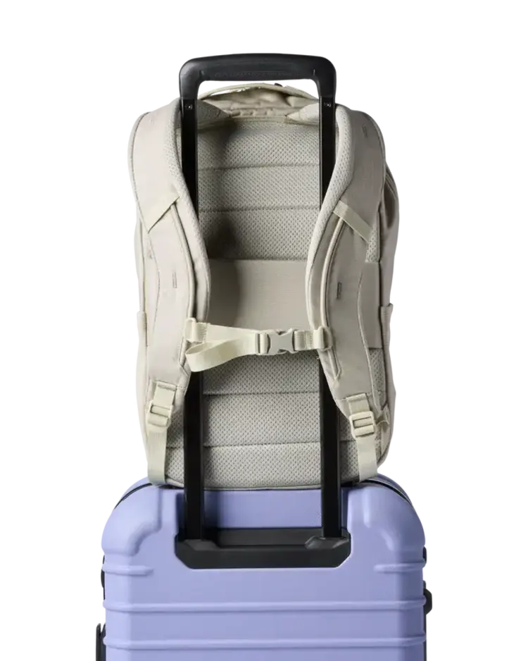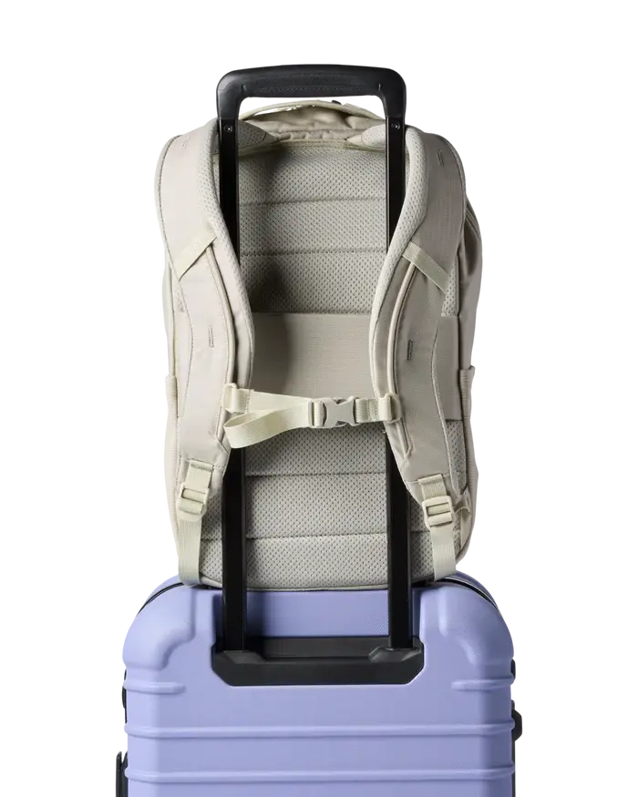For commuters and travelers alike, the Allpa 18L Daypack hauls all your essentials from point A to point B in style while keeping you organized. This traditional panel-loader pack features a laptop and tablet sleeve and mesh exterior water bottle pockets for the daily. And when it’s time to switch from work to travel, the highly durable fabric can handle getting roughed up on trains and subways, and the pass-through luggage strap on the back lets this pack sit upright on a roller. Also available in 26L. Identical to our standard Allpa 18L in features and function, this Del Día version uses high-quality deadstock fabrics, making each pack one-of-a-kind.