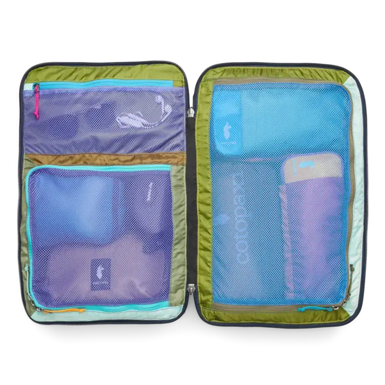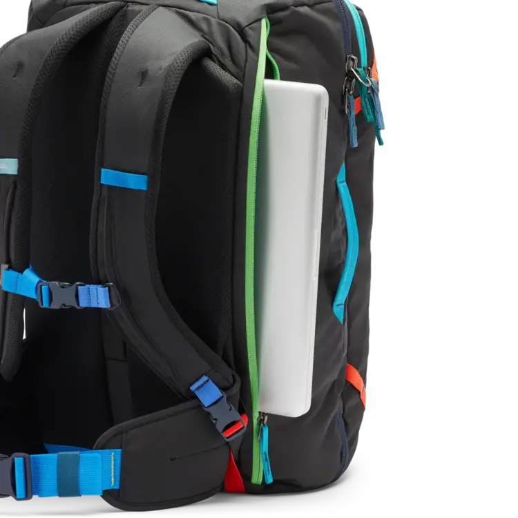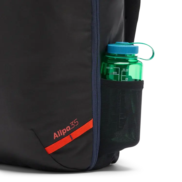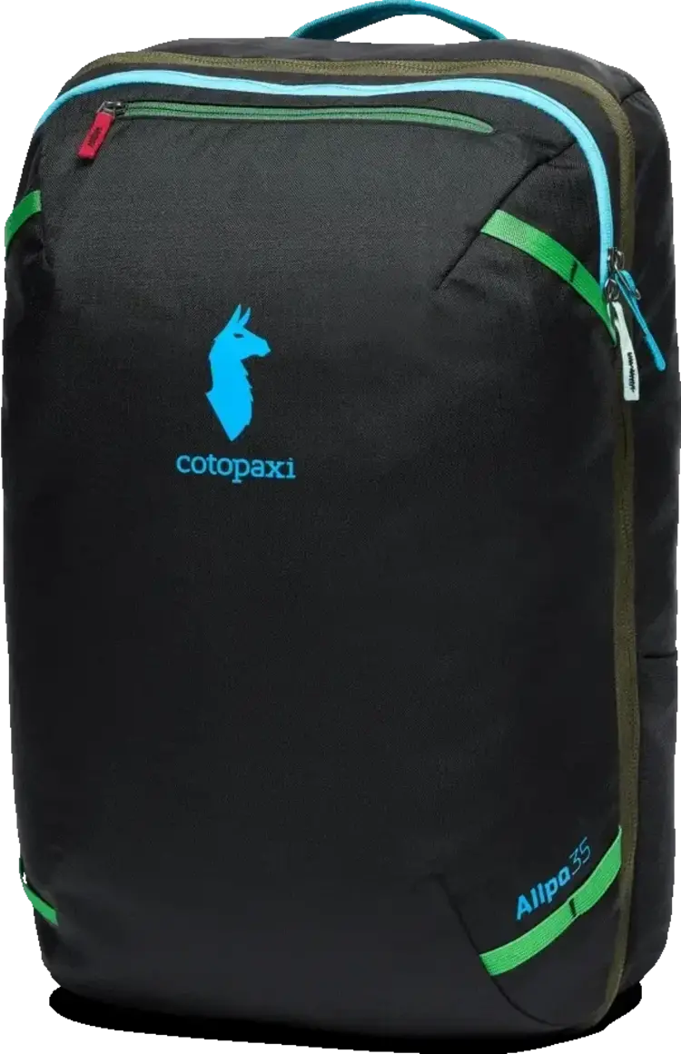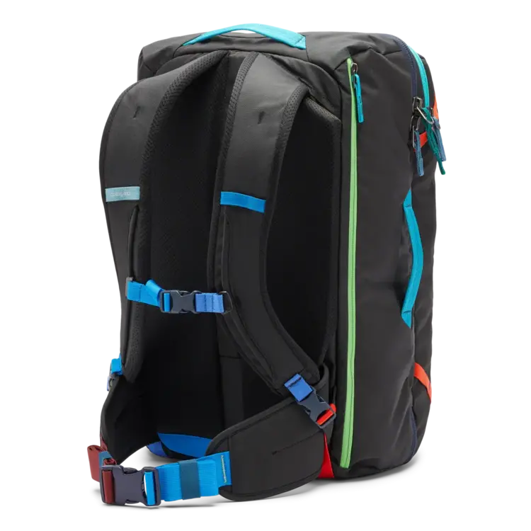 Identical to our standard Allpa 35L Travel Pack in features and function, this Del Día Dark version uses high-quality deadstock fabric that might have otherwise ended up in the landfill, making each pack one-of-a-kind.