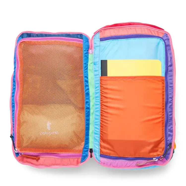 Identical to our standard Allpa Mini 20L Travel Pack in features and function, this Del Día version uses deadstock fabrics, making each pack one-of-a-kind.